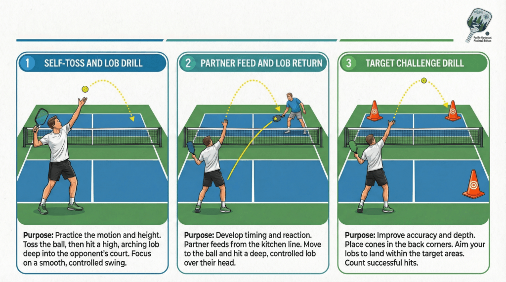Practicing pickleball lob shot drills regularly helps you transition from practice to real‑game success. Try incorporating lobs into rec games, experiment with timing, and track what works. With repetition, your lob becomes a reliable tool that adds depth and unpredictability to your game.