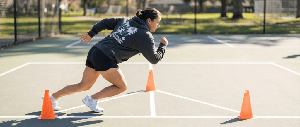 Agility drills improve your ability to move quickly, change direction, and stay balanced during fast rallies. Better agility means better court coverage, faster reactions, and more confidence at the kitchen line — all essential for leveling up your game.
